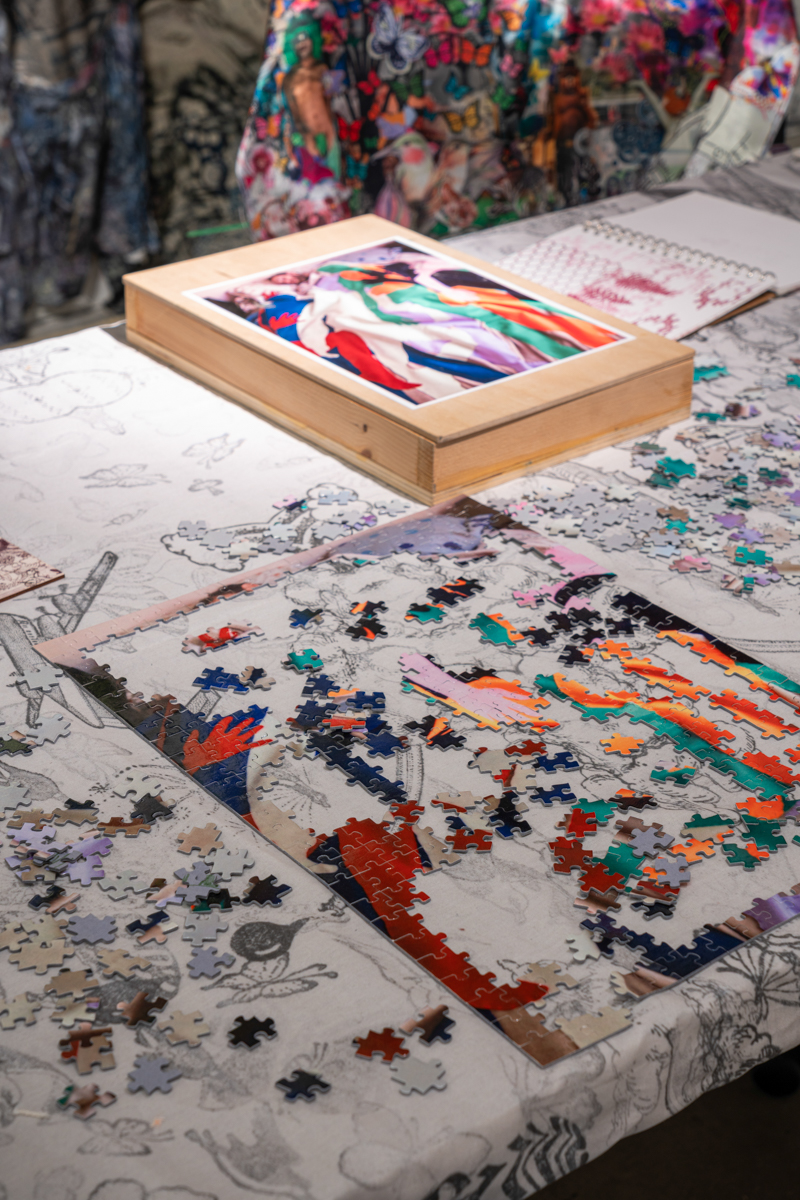 John Birtle (b. 1985, Long Beach) brings a bold and evolving exploration of authorship, images, and collectivity to his art. Working across drawing, sculpture, and installation, he reimagines everyday objects, highlighting both their utilitarian and aesthetic qualities, revealing how they connect people in unexpected ways. More is More, his first solo institutional exhibition, restages an installation first conceived in his studio. In it, Birtle combines drawings, artist books, and sculptures like puzzles, kaleidoscopes, and dice to create a dynamic environment that fosters connection among viewers.